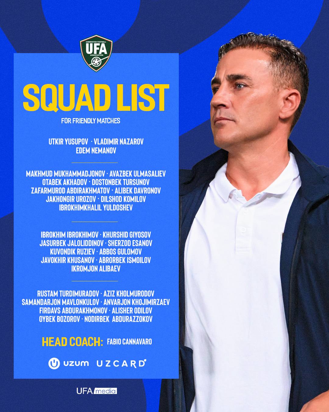 Milliy jamoa bosh murabbiyi Fabio Kannavaro yanvar oyidagi yigʻinga jalb etilgan futbolchilar ro‘yxatini e’lon qildi.