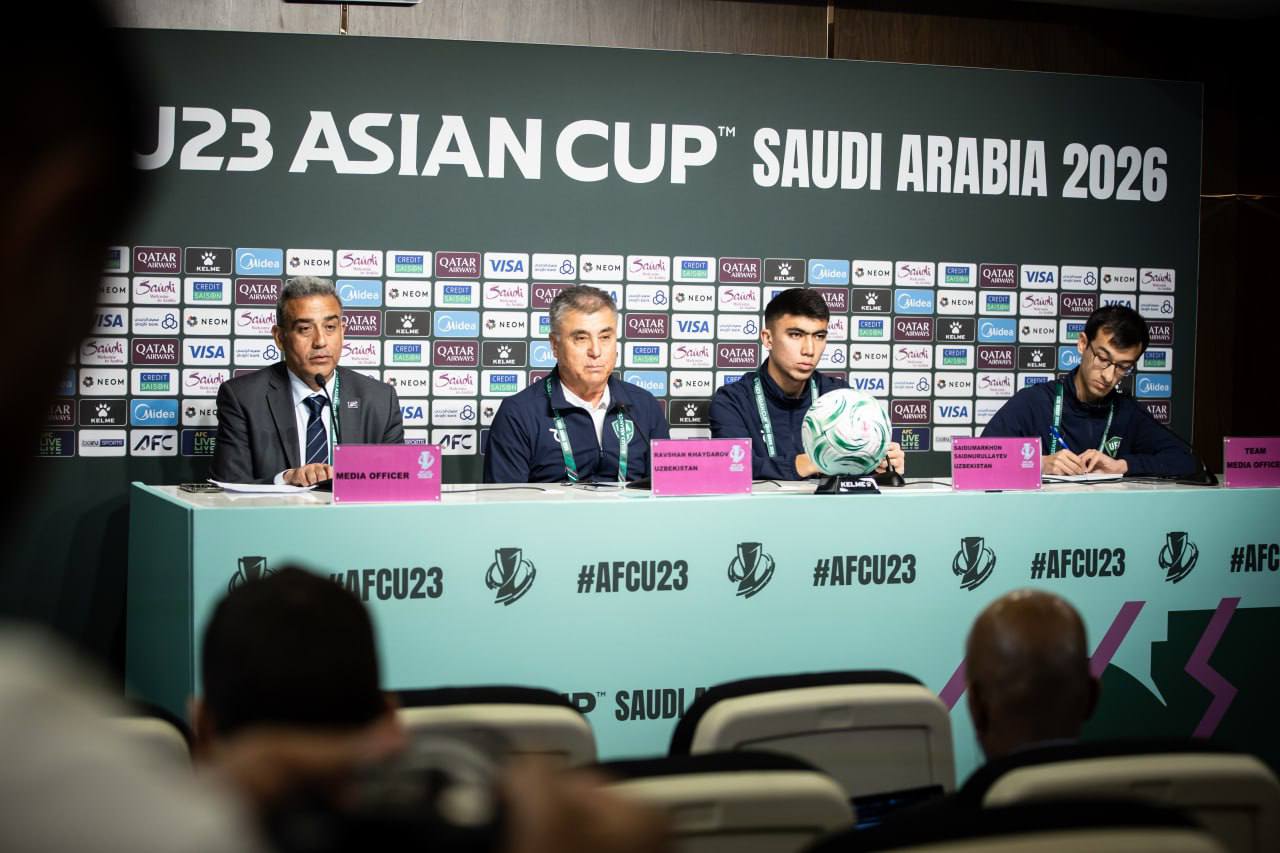 Matbuot anjumanida bosh murabbiy Ravshan Haydarov va futbolchimiz Saidumarxon Saidnurullayev ishtirok etdi.