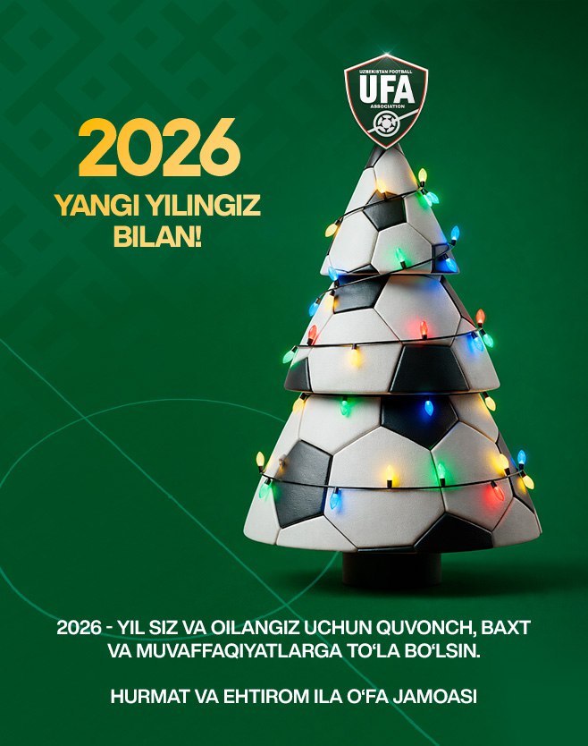 Aziz yurtdoshlar! Oʻzbekiston futbol assotsiatsiyasi Sizni kirib kelayotgan 2026-yil bilan samimiy muborakbod etadi!